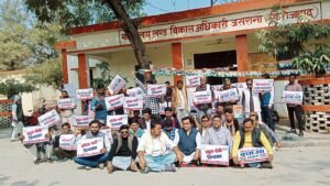 ग्राम पंचायत अधिकारियों का विरोध प्रदर्शन